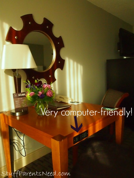 As someone who was there to get some work done, I really appreciated seeing the outlets in the work desk, itself. That make getting plugged in so much easier.