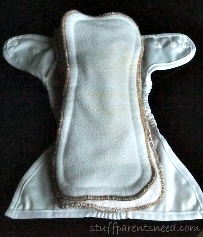 When you remove the second layer for daytime use, it fits just like any other diaper with an insert. I think these inserts are the bee’s knees, you guys. They hold A LOT of liquid. I’m a big fan.