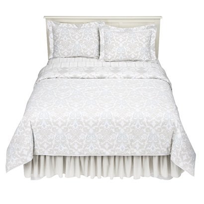 I just got this on ebay (it was about $30 bucks cheaper there than at Target!). The colors are a pale gray and there’s also a soft tan color in there, though it can be a little bit tough to see at first.