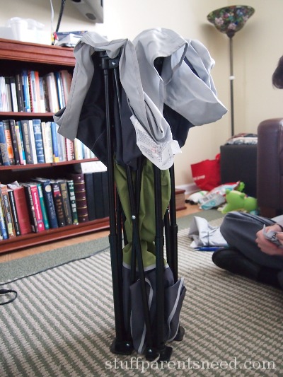 That is a thing of beauty, my friends! It folds up like a camping chair! Which means it can get tucked away in the corner, or in a closet, or even under the bed. Cue the angels singing!!!